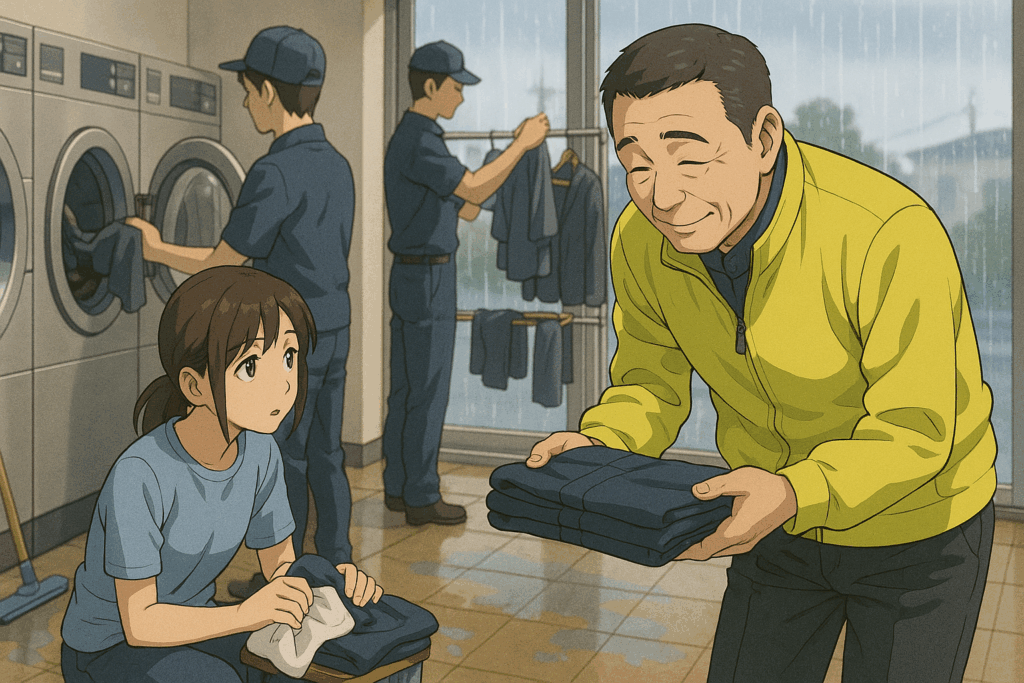 社長就任後、大きな転機となったのは2004年(平成16年)の台風被害です。当時、同時に3店舗が浸水する甚大な被害を受け、在庫が4,500万円分流出しました。当期は赤字になる覚悟をしました。しかし、水に濡れた作業服やズボンをコインランドリーで洗濯し、「100円でも200円でもいいから売ろう」と判断しました。作業服は元々汚れるものなので、これが功を奏し半期決算で黒字に転換しました。