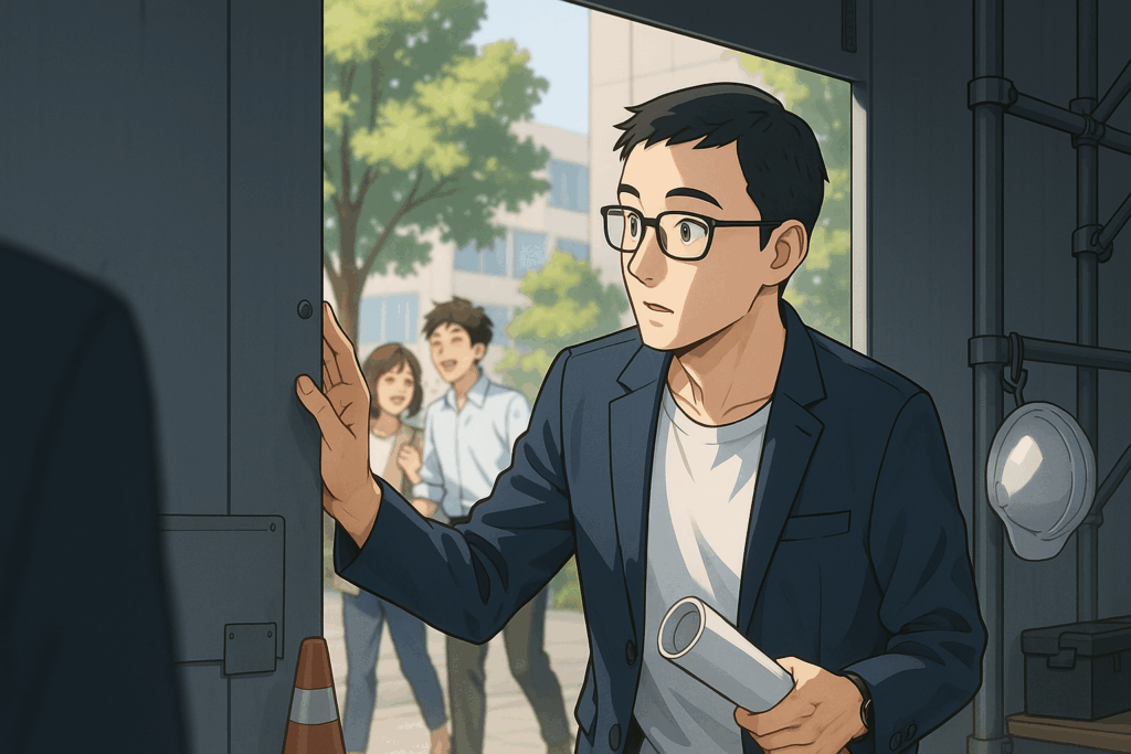 私は工業大学の建築学科を卒業し、ゼネコン(建設業)に就職しました。ビル建設における図面作成、業者への指示、計画立案を担う技術者として勤務しました。卒業後は大阪、東京、名古屋などで働きました。現場監督として工事現場で働いていた頃は、鉄板の塀の中で一日のほとんどを過ごすことが常態化していました。特に東京の現場で、一人で図面を描いている際、塀の外から楽しそうな笑い声が聞こえ、塀の外は楽しいのだろうと思ったことを覚えています。当時まだ25歳ほどでしたが、塀の外から聞こえる笑い声が羨ましかったです。